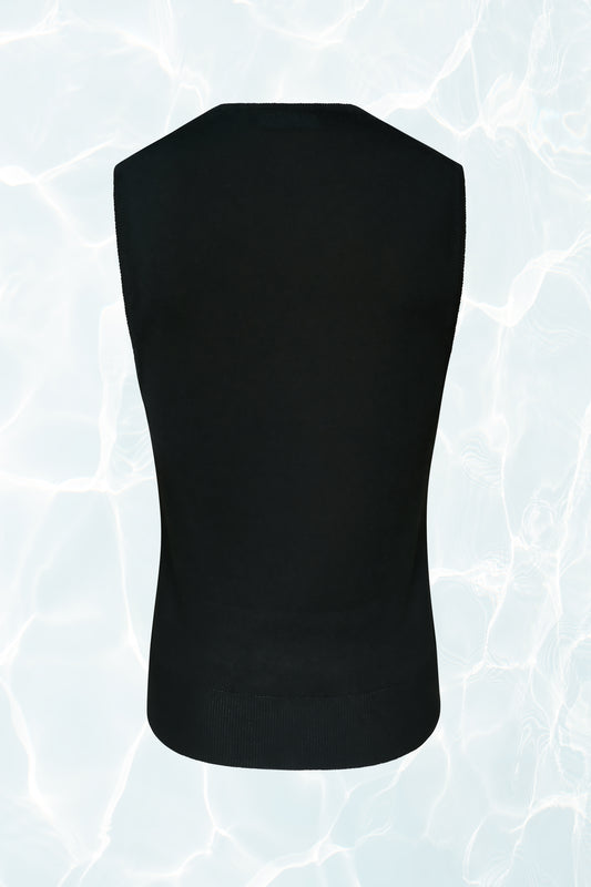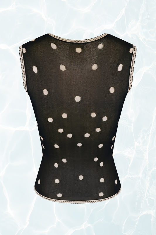 Vintage SS 2002 Black and Beige Camelia and Polka Dot Print Knit Logo Sweater Vest
