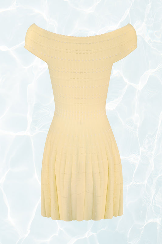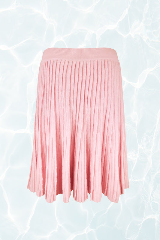 Vintage CC Logo Pink Cashmere-Linen Crochet Knit Pleated Skirt