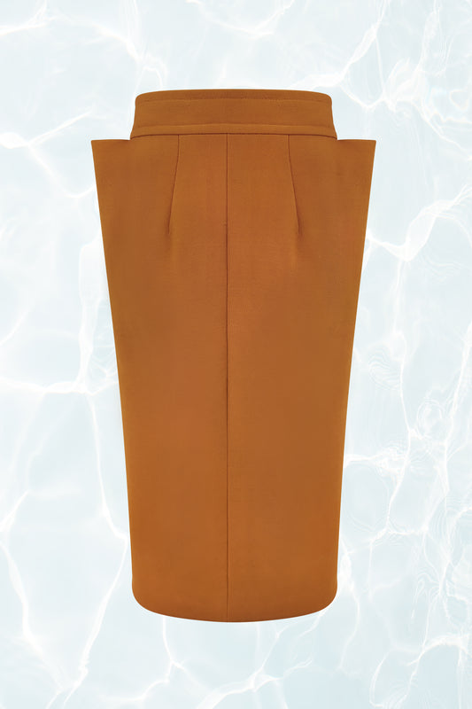 AW 2017 Runway Brown Wool Crepe Midi Pencil Skirt