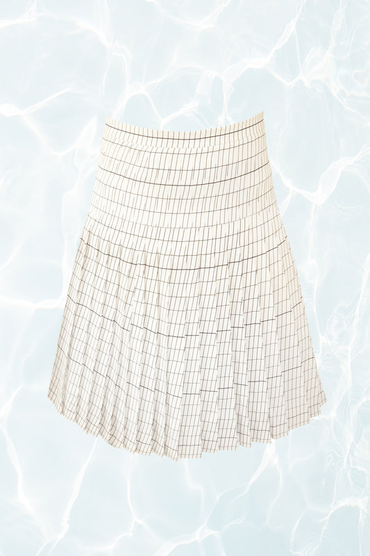 Phoebe Philo Era Silk Black and White Pleated Grid Print Skirt