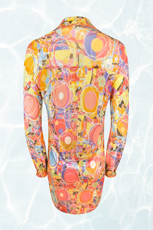 Vintage Long Sleeve Abstract Retro Psychedelic Print Zip Front Silk Dress