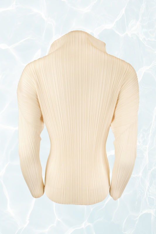 Pleats Please Sculptural Cream Blouse with Exaggerated Silhouette