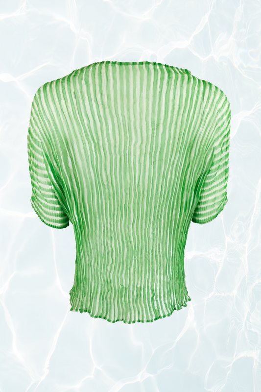 Issey Miyake Neon Green Short Sleeve Stripe Top