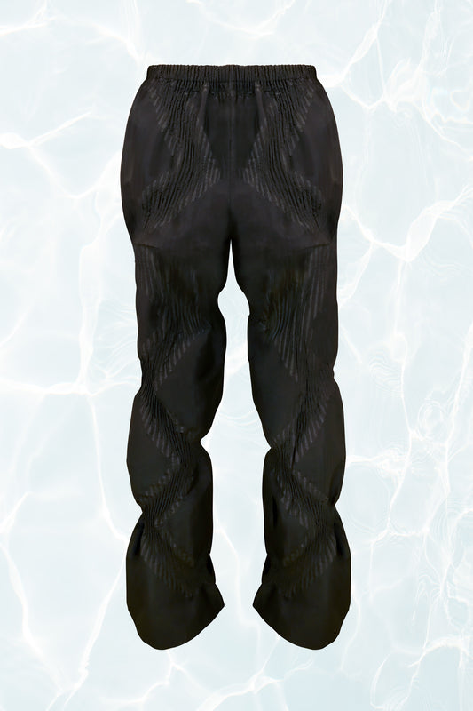 Baggy Zig Zag Pleated Pants with Fringed Edge Details