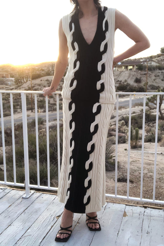 AW 2013 Wool Cashmere Contrast Cable Knit Skirt Suit