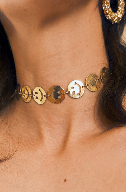 Vintage Happy Face Charm choker and Bracelet Set