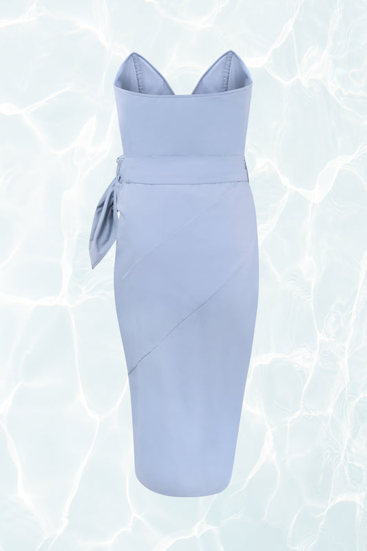 Powder Blue Strapless Plunge Wrap Dress