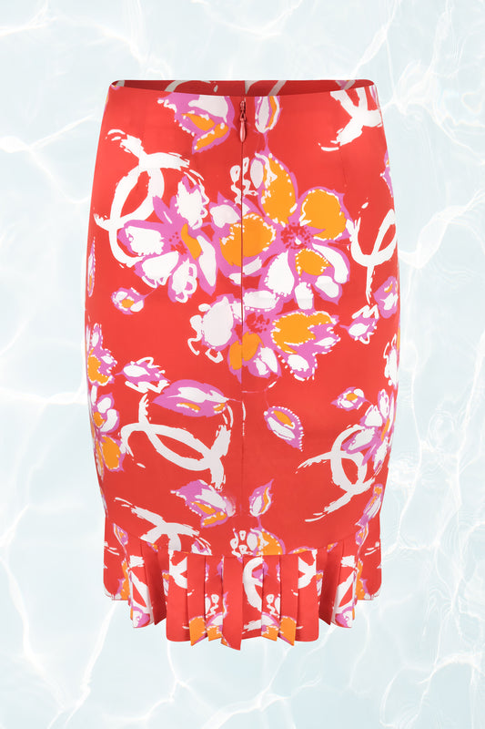 Chanel 2001 Red CC Skirt with Pleated Hem