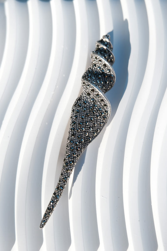 Vintage Art Deco Sterling Silver Sea Snail Shell Marcasite Brooch