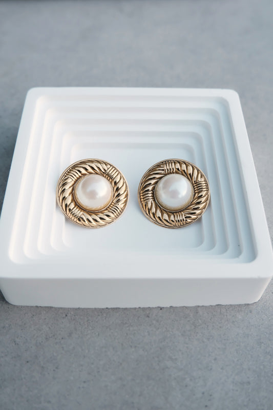 Vintage Gold-Tone Faux Pearl Clip-On Earrings with Rope Detailing