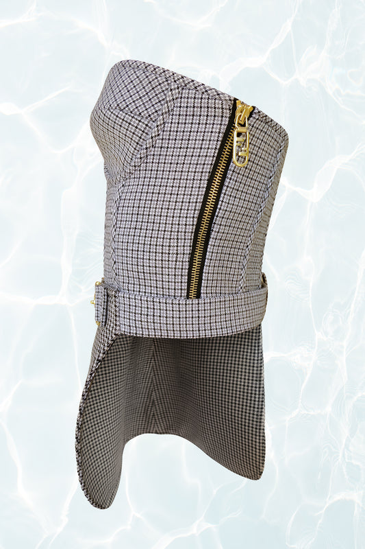 AW 2022 Strapless Houndstooth Bustier with Gold Logo Details