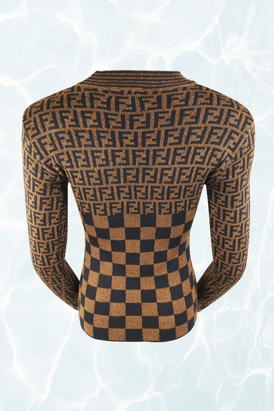 Vintage 90's Zucca Logo Check Print Long Sleeve Knit Top