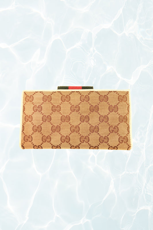 GG Monogram Canvas Wallet Beige Sherry Line Red and Green